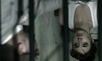 Super-steamy policewoman whips and dominates blonde girl in a prison