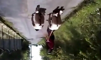 Covert cam records horny Japanese girl pleasuring a corded up guy