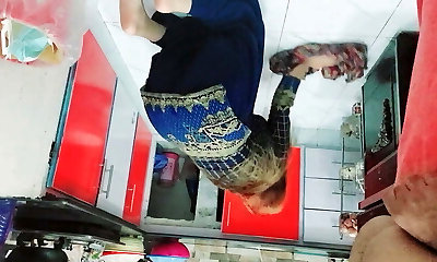 I surprise the cleaning doll from the hotel apartment service and she helps me complete cumming with a handjob in the bathroom
