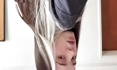 Wifey nailed hard with tongue while washing dishes in the kitchen, getting her to cum before her stepmom gets home.