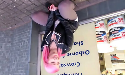 Slender brunette stretches anal with a long fucktoy, deep penetration, belly play through anal, jet climax.