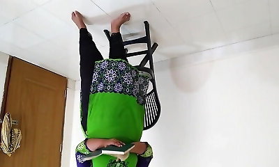 Plus-size School Teacher Sitting On Chair Read A Book When A Stranger Entered The Room & Corded Her Hands Roughly & Romped Her (cum)