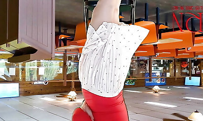 My PUBLIC park undressing! Diminutive, cute teen with small tits almost got caught doing striptease!