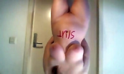 Woman shows her puss to the voyeur of the Internet technician and catches her fucking and dribbling cum .