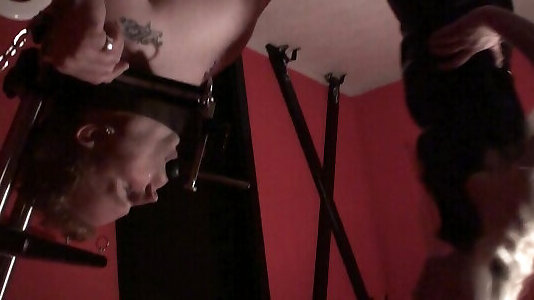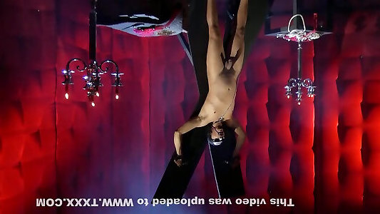 Male Slave Machine Spit Roasted in the Ball Crusher Humber Device