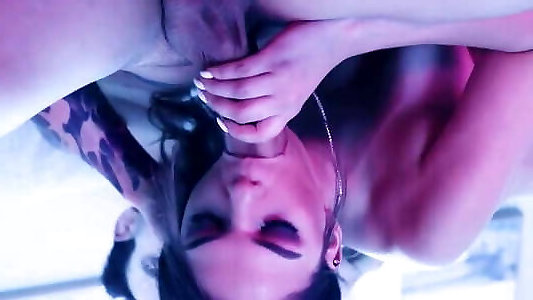cockslut tinder sexy blond deepthroats a ginormous manhood in blue light