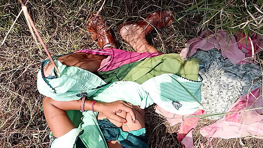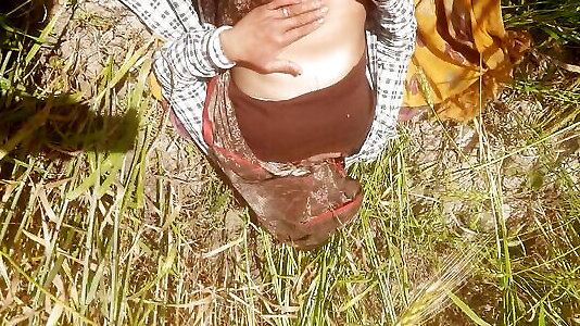 Desi daughter-in-law is walking in the wheat field in front of her father-in-law with her big ass and fingering her pussy.