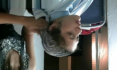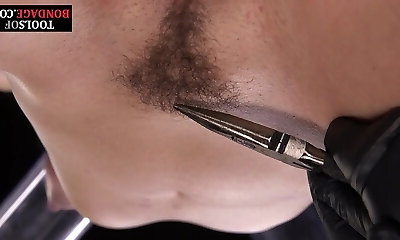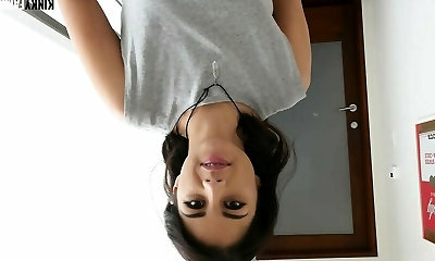 Fur Covered Slit Hot Taut Brunette Catches Boyfriend Masturbating and tries to Help Him Cum Quick by Massaging his Dick