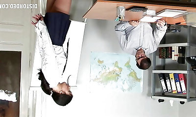 Nerdy brunette Roxanne Rae gets punished in the cold basement