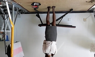 Ultra-kinky dude fucks unshaved pussy of suspended and strapped up bitch in stockings