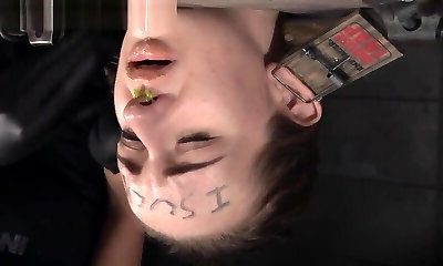 Richard Nailder spanks a bound Mystic Monroe's teen pussy before making her deep-throat his cock